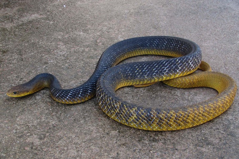 Alimenta-se de anfíbios, lagartos, aves, roedores e outras serpentes.